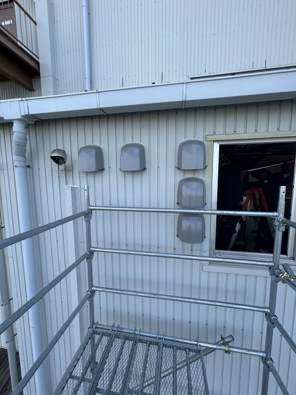 外部工事は部屋の場所が高所の為、足場を設置しての作業となりました。