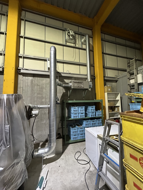 ダクト以外に焙煎時に拡散した煙を排気する有圧換気扇も設置しました。
