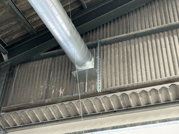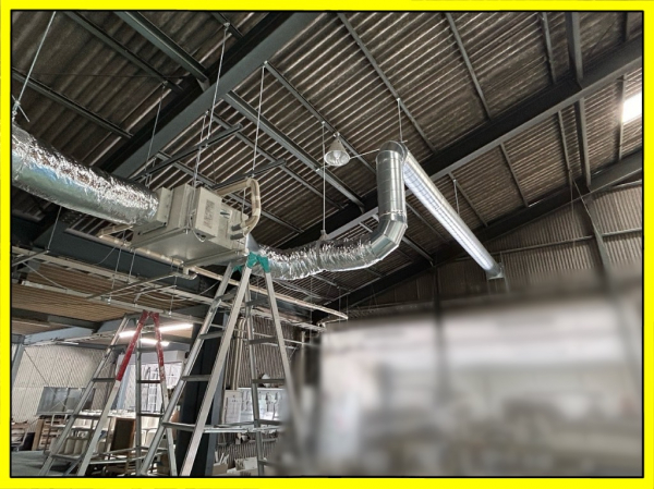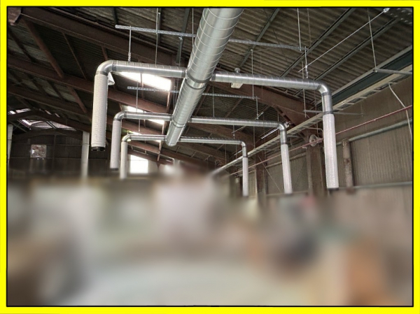 先回と同じお客様となります。同時施工で無く設置して様子を見てからと言う事で、結果もう1系統もとなりました。今年は去年以上に気温が高い状態が続いておりなるべく早くとの要望です。窯業工場ですので工事当日は稼働していないのですが工場内特に屋根に近い上部はとても暑いです。ダクトを吊り下げる為に屋根の支持材母屋に金物を取付けるのですがこの時期暑さでフラフラになります。こちらも外気導入で但し集塵の排気が近くにある為、屋根上に立ち上げて高い所から取込む事にしています。主に1日目で大まかにダクトと元請による空調機の設置、2日目に外部ダクトと断熱工事で完成です。土日の工事ですので従業員の皆さんは月曜日から涼しい風を受ける事が出来、少しは快適に過ごせるのではないでしょうか。それにしても今年は暑いです!39℃を超えるような環境ですと空調服も役に立ちません。今後も暫くは暑いですが体調に気を付けて乗り越えたいですね。