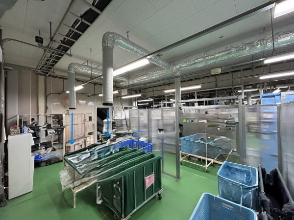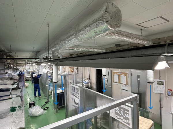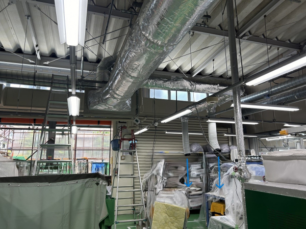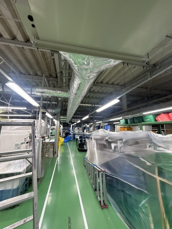 今回の工事は少し?遠い箱根にある工場様となります。元請の空調設備会社様を通しての案件です。見積からあまり時間を置くことなく工事となりました。4系統ある内の今期は3系統を行います。工事前に一度調査で入り施工図を用意します。週一でしか工事が出来ない為、一度に進める事は出来ません。7月末頃から掛かりまして8月末頃に仕上げとなりました。標高がある為に以前は送風のみで良かったそうですが最近の暑さはそう言う訳にはいかなくなったようです。1系統ずつ仕上がっていくに従い、他の系統も少しでも早く稼働させたくなるお客様の声に応える為、出来るだけ効率的に進めたつもりです。今年は暑い時期が長く続いたのでその後も十分空調機からの冷気を従業員様に届けれたのではないでしょうか。